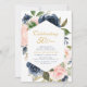 navy and blush wedding anniversary invitation, watercolor flowers and elegant black lettering script. Customize the text and colours.