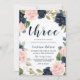 Navy Blush Flowers 3rd Birthday Party Boy or Girl Invite