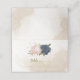 Beautiful wedding place card featuring navy and blush pink flowers and green leaves.