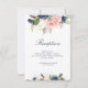 A floral design with beautiful pink blush and navy blue watercolor flowers.