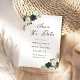Navy & Blush Pink Floral Save The Date Card