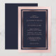 Navy Blush Pink Rose Gold Modern Framed Wedding Invitation