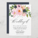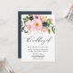 Navy & Blush Watercolor Flowers Wedding Invitation