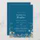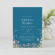 This navy boho wildflower wedding reception invitation is perfect for a modern post elopement party. The design features pink, purple, blush, yellow, dusty blue, red, burgundy meadow wild flowers assembled in a seamless and delightful floral pattern, evoking natural beauty.