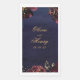 A burgundy navy wedding dinner napkin/guest towel featuring watercolor painted bordeaux burgundy red peonies with outlines and splashes of gold against a velvety dark navy blue watercolor wash background.