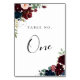 Modern and elegant typography design, table number card. Card features elegant watercolor floral arrangements in shades of blush pink, navy blue and burgundy red. When ordering table number cards, each card must be numbered and ordered individually. Designed to match our Navy Burgundy Blush Floral Collection.