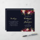 Bohemian style wedding program featuring watercolor illustration of burgundy, red and pink peonies and roses with feathers accent on navy blue background.. NOTE: You will need to fold them in half when they arrive.