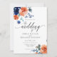 Navy Burnt Orange Floral Boho Elegant Wedding Invitation