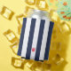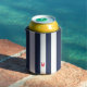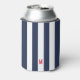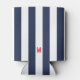 Navy Cabana Stripe & Personalized Red Monogram Can Cooler