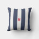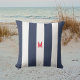 Navy Cabana Stripe & Personalized Red Monogram Outdoor Pillow