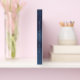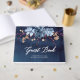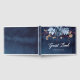 This wedding guestbook has a nave chalkboard background and a blue floral motif on it. It is fully customizable and comes with wedding stationery found in this store.