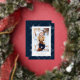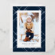 Chic and stylish, this one-photo Christmas card is the perfect way to send holiday greetings to friends and family. A silver foil plaid frames a single vertical photo. The two text spots can be customized with your own greeting, name, year or any other message. The back is a matching navy blue with white dots. The greeting can be edited for Merry Christmas, Happy Holidays, Happy New year or any message! This card is perfect for families, newlyweds and more!
