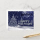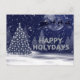 Navy Christmas Tree Dark Snowy Night Postcard. Elegant, beautiful, modern design.