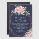 Navy Copper Geometric Watercolor Floral Wedding Magnetic Invitation