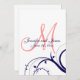 Navy Coral Swirl Monogram Wedding Invitation
