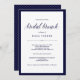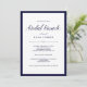 These elegant, stylish bridal brunch invitations feature chic navy blue text on a white background, bordered in navy.