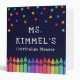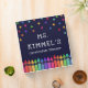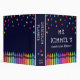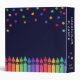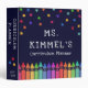 Teacher curriculum planner binder personalized with the teacher's name beneath colourful stars and above a row of crayons in a rainbow gradient. Kindergarten teacher planner binder in a colourful and fun design.