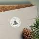 Finish your holiday mailings with these charming return address stickers, featuring a sketched illustration of a charcoal black front door adorned with a Christmas wreath. Personalize with your family name or names, and your return address, in a curved layout.