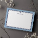 Get a professional look with our formal and elegant personalized stationery flat cards feature your monogram and your name beneath in Sans Serif font coupled with elegant open face font framed by a chic navy double border over a dusty blue background.