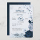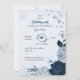 Elegant navy blue and dusty blue flowers and some beautiful leaves birthday party invitation