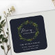 NAVY ELEGANT HOLLY BERRY WREATH CHRISTMAS ADDRESS SQUARE STICKER