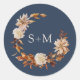 Navy Fall Monogram Floral Wreath Classic Round Sticker