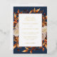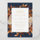 Navy Fall Wedding Foil Invitation. This elegant wedding invitation features a beautiful frame of hand-painted boho watercolor burnt orange and terracotta leaves, cream and beige dahlias, and beautiful rust-coloured roses on a navy background printed in real gold foil. Find matching items in the Navy Autumn Romance Collection.
