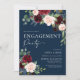 Boho Navy Burgundy and Blush floral Engagement Party Invitation. This invitation is characterized by boho burgundy and blush roses and flowers with two modern high-class fonts that shape the trends of the present and future festive events.