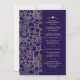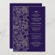 An elegant graduation invitation with stenciled flowers against a navy-blue background. The featured graduation cap topper can be dragged to any location, made larger or smaller (+-), or eliminated. (<a href="http://www.freepik.com/free-vector/graduation-poster_716543.htm">Designed by Freepik</a>). (<a href='http://www.freepik.com/free-vector/wedding-invitation-design_1060790.htm'>Designed by Freepik</a>). <br/><br/>The card is easy to customize with your wording, font, font colour and choice of six paper types.<br/><br/>Not exactly what you're looking for? All our products can be custom designed to meet your needs at no extra charge.<br/><br/>Simply contact us at heartfelthelper@gmail.com<br/><br/>Coordinating products available: