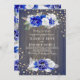 Gold confetti dots, rustic wood background and navy flowers engagement party invitations
