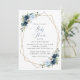 Invite friends and family in style and set the tone for your special day with this charming baby shower invitation. Design features navy and blue watercolor flowers, greenery and gold frame on white background.