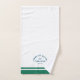 Game Set Match, navy crest, green stripe tennis hand towel. Personalize with the year, tennis club / championship / tournament name and location. The perfect addition to your tennis kit or as a gift for a tennis lover. Designed to match our Game Set Match Tennis Collection.