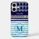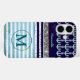 Navy Girly Stripes Monogrammed Case-Mate iPhone Case