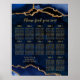Guide your guests in style with this elegant wedding seating chart featuring a navy blue agate marble design accented with luxurious gold details. The bold geode-inspired background creates a dramatic and sophisticated look, perfect for fall and winter weddings, formal celebrations, or glamourous evening events. Designed for up to twelve tables, the layout keeps names organized and easy to read while complementing the organic agate texture. Ideal for couples seeking a stylish and unique wedding display, this seating chart blends natural stone aesthetics with a refined, modern layout. Easily personalize all text to match your wedding details and create a beautiful focal point for your reception.