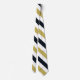 This navy, gold, and white diagonally-striped tie manages to be both classic and modern.