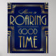 Navy Gold Art Deco HAVE A ROARING GOOD TIME Print