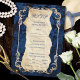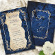 Navy gold baroque wedding elegance captures the grandeur of a timeless, luxurious celebration. This sophisticated RSVP card design features a deep navy velvet background adorned with ornate antique gold scrollwork for a regal, high-end feel. The aged parchment centerpiece adds vintage charm, making it ideal for formal ballroom weddings, elegant cathedral ceremonies, or lavish estate receptions. Perfect for couples seeking stationery that blends opulence with romance, this baroque-inspired style transforms your wedding suite into a keepsake guests will treasure. The navy and gold palette is a favourite for black-tie weddings, winter celebrations, and royal-themed events, while the intricate baroque detailing adds a touch of European artistry. Fully customizable to match your wedding vision, it pairs beautifully with matching invitations, details cards, and envelopes for a coordinated suite that tells your story from the first impression. Designed for brides who want more than just paper — they want a statement of elegance, tradition, and luxury that sets the tone for an unforgettable day.
