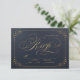 Elegant handwriting calligraphy script with flourish frame in navy blue and faux gold colour, clean and formal, great wedding RSVP cards for vintage wedding, traditional wedding, and classic wedding all year round.