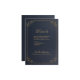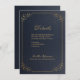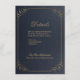 Elegant handwriting calligraphy script with flourish frame in navy blue and faux gold colour, clean and formal, great wedding details card for vintage wedding, traditional wedding, and classic wedding all year round.
