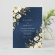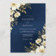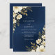 Elegant floral elements in creamy white and rich gold adorn a deep navy background. This design evokes a sophisticated and romantic atmosphere, perfect for a refined occasion. Delicate blossoms and flowing foliage create a timeless aesthetic.