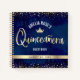 Let your favourite Quinceañera be proud, rejoice and celebrate her milestone event with this stunning keepsake guest book. A sparkly gold faux foil crown, calligraphy script, and tiny confetti glitter dots, along modern white sans serif typography, overlay a dramatic navy royal blue watercolor background. Personalize the custom text with her name and date of event. 10 different inside paper designs and 7 spiral colours to choose from. Guaranteed to add stylish memories of her occasion. Matching and coordinating invites, address labels, stickers, thank you cards, and other Quinceañera goodies are also available in this trendy and special collection.