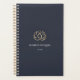 Chic personalized planner for your spa, holistic health & wellness, yoga studio, or massage therapy business features two lines of custom text in classic white lettering, on a rich navy blue background adorned with a faux gold foil lotus flower logo. A silhouette of a meditating person is subtly worked into this modern and elegant design. Personalize with your name or business name, or your choice of custom text.