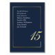 Navy Gold Minimal Border Script Typography Wedding Table Number