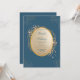 Navy Gold Oval Floral Boho Wedding Invitation