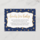 Navy gold stars boy book request card featuring a navy blue background and gold stars. Tuck this little card in with your baby shower invitation to ask guests to "bring a book instead of a card" to help build baby's first library! Please contact the designer at info@lemontreecards.com to request matching items.