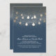 Faux gold foil string lights navy engagement party invitations for rustic country, vintage yet modern engagement celebration.