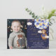 Cette adorable invitation à thème en ours en peluche saura mettre un sourire sur le visage de vos invités ! Le modèle de couleur bleu marine et or moody rend ce design parfait pour une fête d'anniversaire garçon. Personnalisez l'invitation avec vos détails et si vous voulez réorganiser le style et le placement du texte, veuillez appuyer sur le bouton "Cliquez pour customiser plus loin".