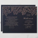 Navy gold wedding program folded. Blue botanical