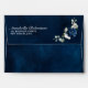 Dark navy blue floral wedding envelope featuring elegant bouquet of navy blue, royal blue , white , gold, champagne ivory, blush colour rose , hydrangea, ranunculus, peony, flower buds and sage green eucalyptus leaves and elegant watercolor with round glitter geometric neutral frame. Please contact me for any help in customization or if you need any other product with this design.