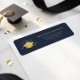 Celebrate your big achievement with these navy blue and gold elegant and customizable graduation return address labels. Featuring a timeless black mortarboard icon and a "Class of" layout, these stickers are the perfect finishing touch for your graduation stationery. Whether you are mailing high school graduation announcements, college commencement invitations, or senior open house invites, these labels ensure your envelopes look professional and polished.